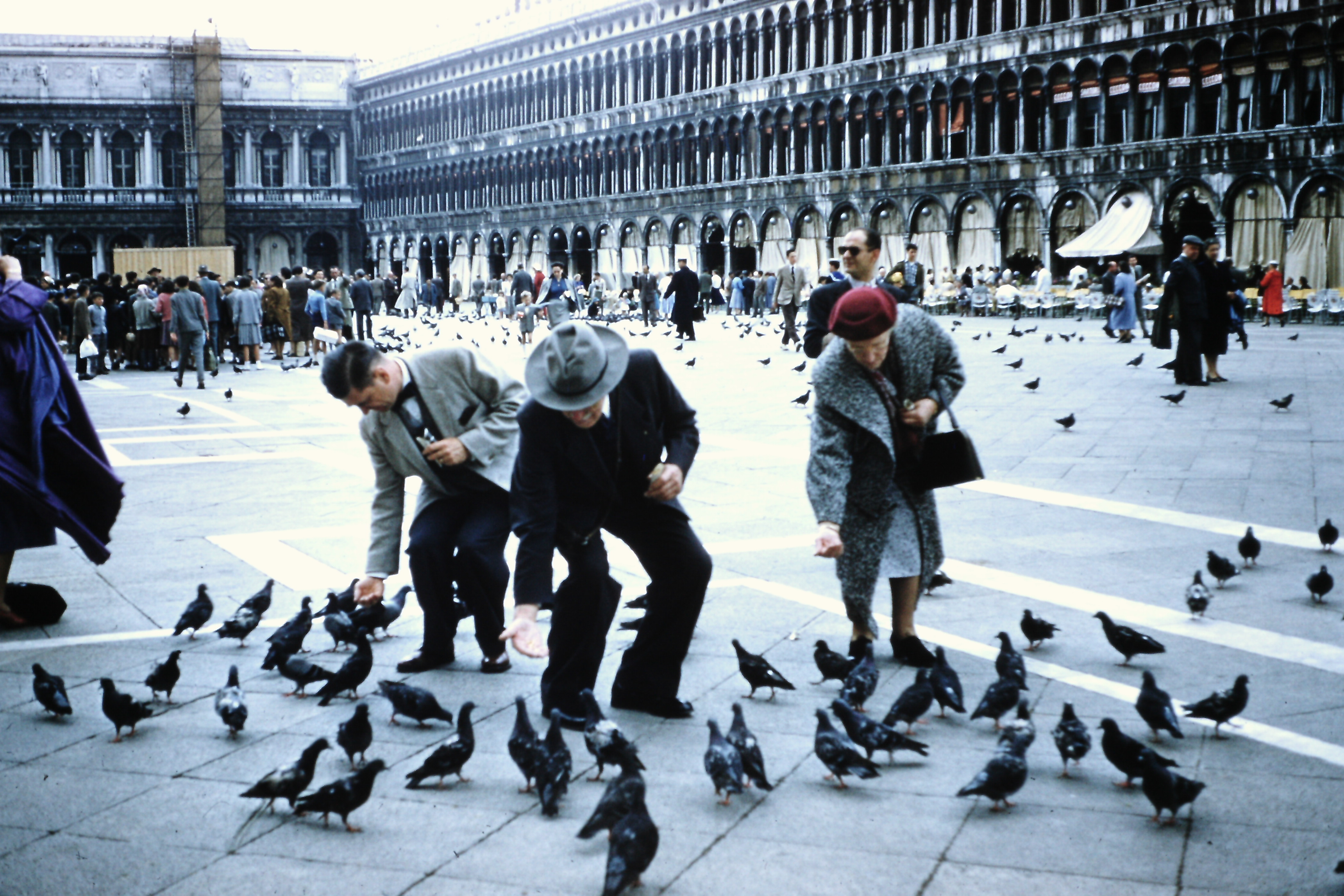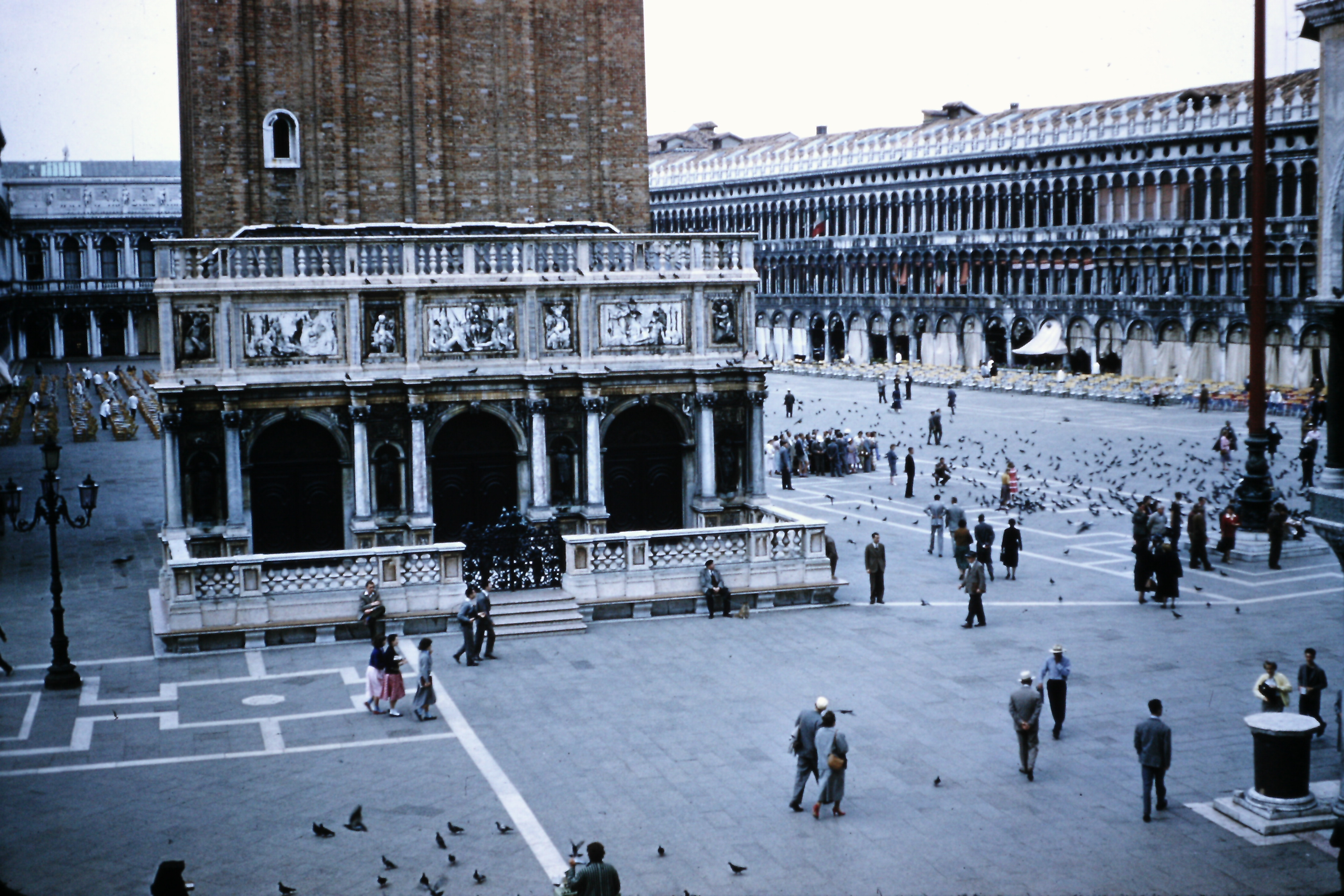 It was late afternoon and the sun was glinting off the gold of the cathedral, the square was full of people with the pigeons overhead, and music wafted from the two orchestras, one on each side of the square. Little children ran here and there or were pushed in their carriages by their nurses, tourists were snapping pictures everywhere or feeding the pigeons, artists were painting at their easels and the Venetians were scurrying to and fro on business. It was a fascinating scene so full of life and activity and beauty. We felt that we wanted to stay and just drink it in for hours. We all said we knew that we would not be ready to leave Venice when the time came.